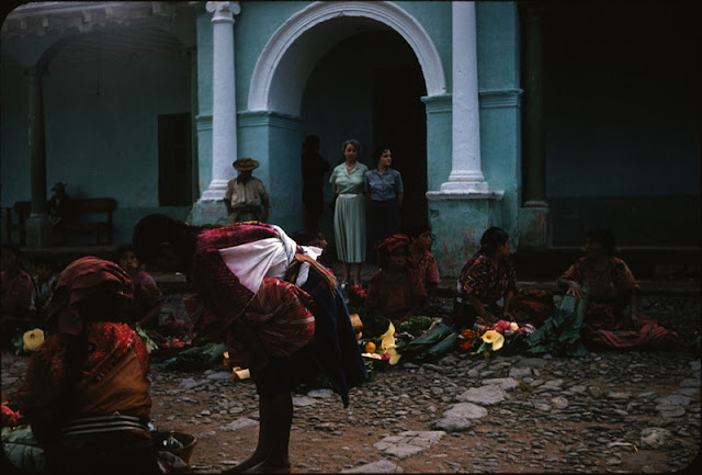 My grandparents, Malcolm & Thelma Merrill, had traveled to Guatemala many times. When I inherited and scanned Malcolm's massive slide collection a few years back, Guatemala was one of the most beautiful places in any of the slides, due largely to their vibrant, colorful outfits that they weave by hand. The patterns date back centuries, and you can tell where people are from by what pattern they are wearing. Here is a picture from 1955 of Thelma and her friend at a market, probably in Antigua: