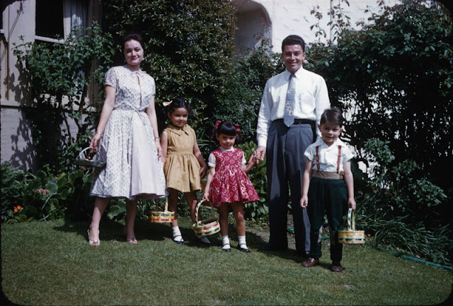 There are many pictures of them in various places around Guatemala. There were also pictures from 1957 showing their children doing an Easter egg hunt in the back yard of 814 Cragmont Street in Berkeley, California, just like many of us did as children. Below is a picture of their family. The oldest daughter's name is Maria (which will come up again later).