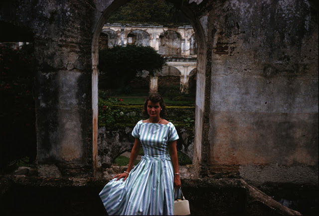 My guess is that these were taken at the ruins of Antigua (which was the capitol of Guatemala until a volcano and earthquakes did enough damage to cause the capitol to move to present-day Guatemala City in 1776). Here is "Jeannie" in an archway in Antigua in 1958 (3 years before she was married to my dad):
