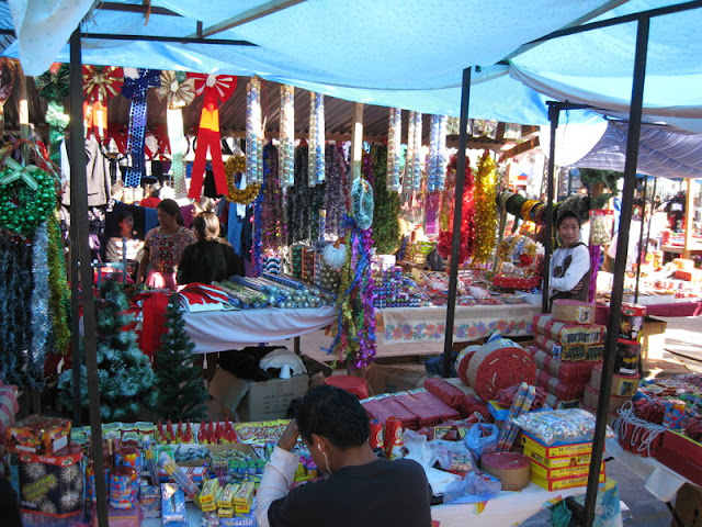 After a nice visit, we joined Neal & Stephanie in San Pedro to check out the big market there. The thing that was neat to me about it was that it was targeted at the Guatemalans themselves, not at tourists, so it was the real deal. I bought firecrackers for 1 Quetzal (about 15 cents), and we had fun seeing the wild colors everywhere.