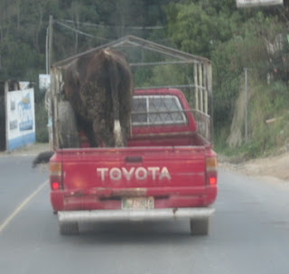 This cow kept stumbling around in the back of this pickup every time they turned a corner.