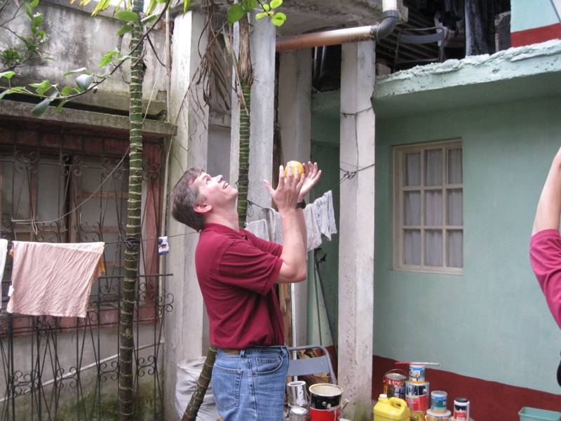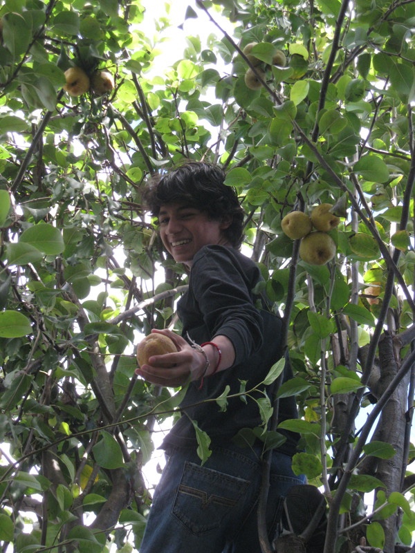 The older boy was a cool kid and told us about how he is attending a university right now. While we were there, we picked some pears from their tree. Here is me attempting (mostly unsuccessfully) to catch pears before they hit the ground after being knocked out of the tree.