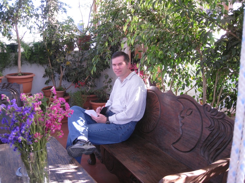 After showering, I found a nice spot in the upstairs courtyard of the bed and breakfast where I wrote in the little black journal that Stephanie Summers had given each of us. It was neat to write a little of what had gone on so far, and the morning and setting couldn't have been nicer.