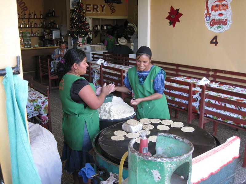 When we got to where the mission office had been 20 years ago, it was no longer there. Fortunately, there was still a chapel, and there was a sign saying what the new address of the mission office is. Across the street we saw these ladies patting tortillas out by hand.