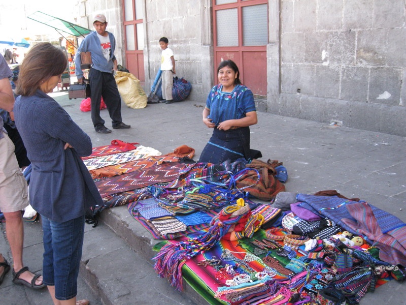 So we went to the central square and pulled over to call the office so the missionaries could come show us the way to the office. While the others were inside making the call, I practiced my Spanish with this lady on the street, who was selling cool hand-made textiles. Linette was surprised to find me out there talking away. I had had Spanish in high school, and Linette and I sometimes spoke Spanish in front of the kids when we wanted to say something secret (although Kelsi is getting pretty good at understanding it). For a couple months before our trip, I also went through the excellent free video lessons on spanishdict.com, which was very helpful.