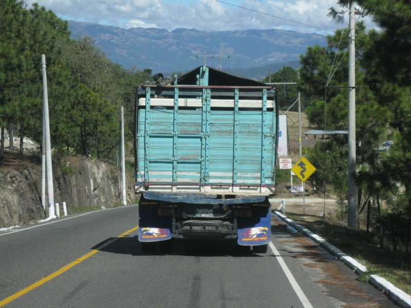 If you look close, there's a kid hanging out of the top left corner of this truck. We caught his eye as we drove behind this truck for a while. There is almost never a safe place to pass on the winding roads across the mountainous highlands.