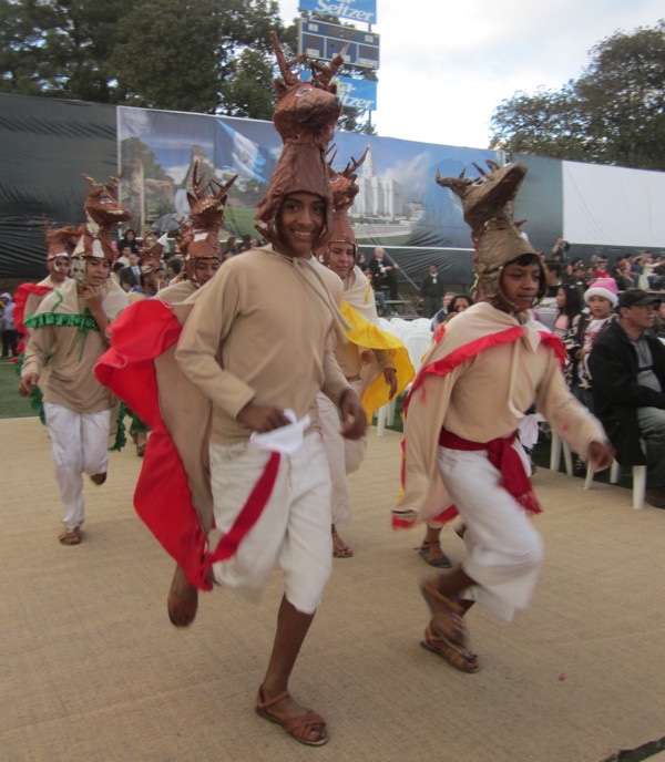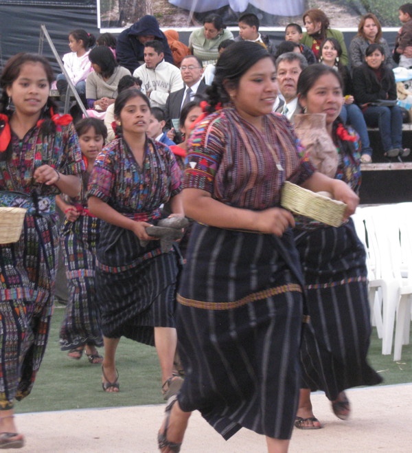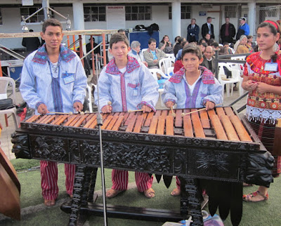 One of my goals of the trip had been to see someone playing the marimbas, since the book A Doorway in Antigua had talked about how proud the Guatemalan people were of this instrument, and how intricately they were carved. So I was excited to see that there were several full-sized sets of marimbas playing music for an hour while we waited for the event to begin.