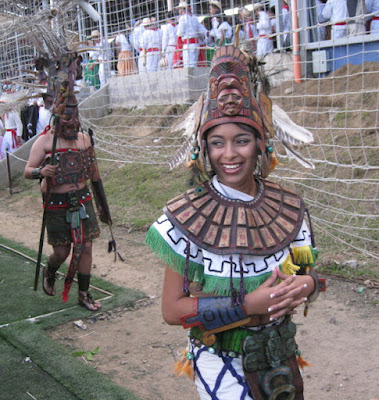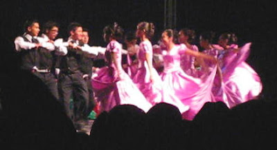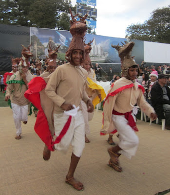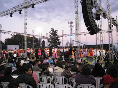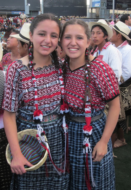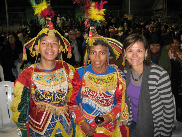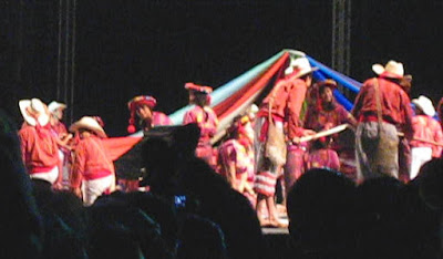 Here are a couple thousand youth in the waiting area. I thought it was cool to see all these youth in their traditional costumes--and the girl in front with her cell phone! :) There was definitely an excited buzz in the room as the kids anticipated performing the dances they had spent six months practicing.