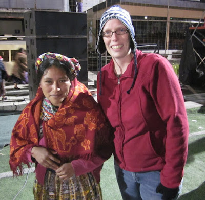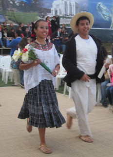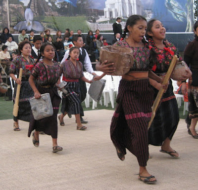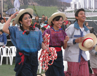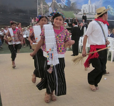 One of the things we were most looking forward to on the trip was the cultural celebration that the youth were putting on in Quetzaltenango the night before the temple dedication. The event had to be moved to a smaller facility, because the soccer stadium kept trying to charge the church more and more. We were worried we wouldn't get to see it, but Linette's old companion Yamilet told us that she had arranged tickets for all four of us, which was wonderful news.