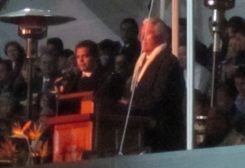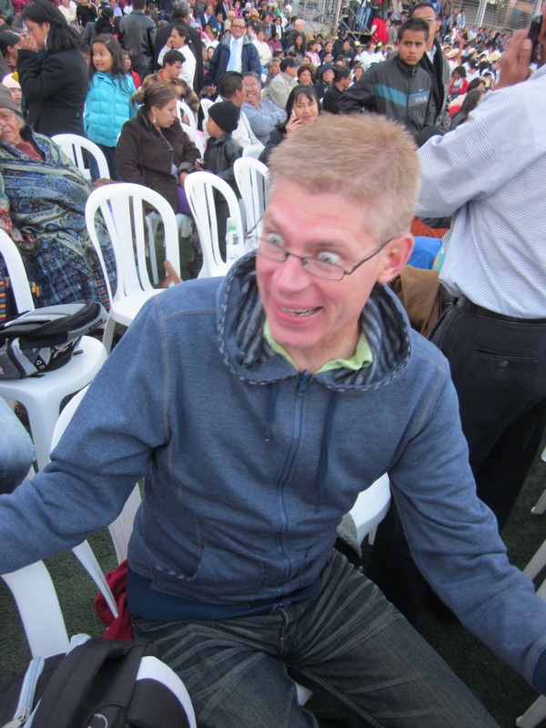 We had found some seats when we first arrived, and a little later a family came and saved some seats next to us. Then, suddenly, in the midst of this crowd of thousands of people, Neal's old companion comes and sits down right next to him!