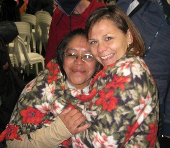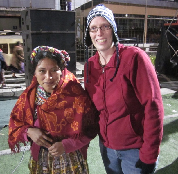 Did I mention that it was kind of freezing that night? It was probably about 50 degrees. Guatemala is pretty far south, but we were in the highlands in December, so while it was pleasant, it could get chilly at night. I didn't realize it would be outside, so I hadn't brought my jacket, so Yamilet, Linette and I all tried to stay under parts of this blanket during the evening. It was the last of the donated blankets we hadn't given away yet.