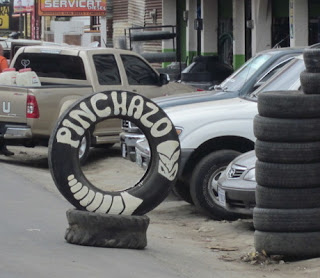 We saw lots of flat tire repair places, almost all of which advertised using a tire painted with "pinchazo".