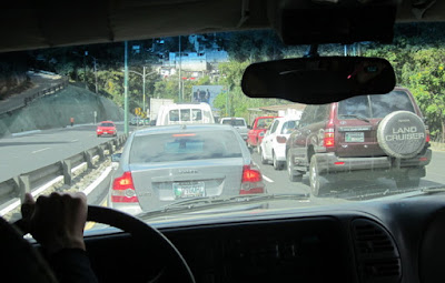 We were cutting it really close on time, and then, just as we got to the top of the hill near the valley of Guatemala City, traffic came to almost a complete halt. For the next hour and a half we poked along at just a few miles per hour, knowing that our chances of catching our plane were going down by the minute.