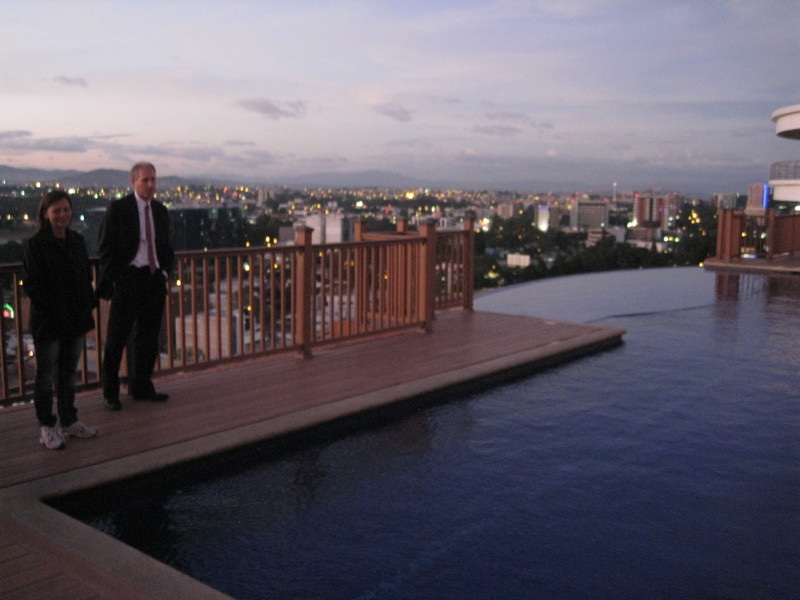 We picked her husband Garth up from work on the way home, and I recognized him as a guy that often rode the same bus with me to work, since they lived in Riverton about a mile from our house. We had a great chat, and he showed us the pool on the roof that had the "disappearing edge", which is very disconcerting from 30 stories up.