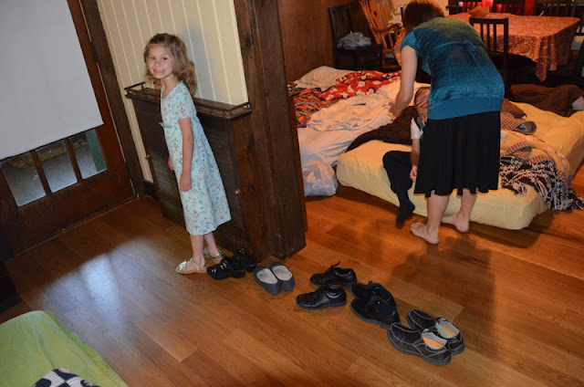 Here is Sienna, ready to go to church in the morning. Mark had done the nice wood floor himself.