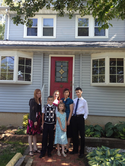 Monday, June 4, 2012, we did baptisms at the Palmyra temple for names we had found ourselves. I loved how the stained glass had trees in it in honor of the nearby Sacred Grove. While there, we asked about Elder and Sister Schmidt, a couple in our ward who were serving a mission there. They came in and helped with the baptisms and we also had a nice visit with them that night in their apartment. They are from Germany and are often referred to as "the German couple." That night Sister Schmidt said, "I've never been so German as I am here!"