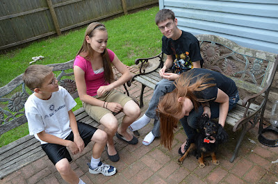 We hung out on the back patio for a little while, playing with Emma, their hyper-happy dog.
