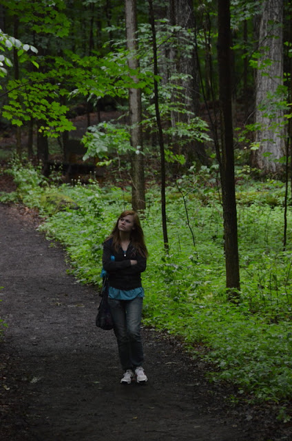 There was no gravel inside the grove, so our footsteps were suddenly so quiet. The only sound in there was of the rain dripping through the trees.