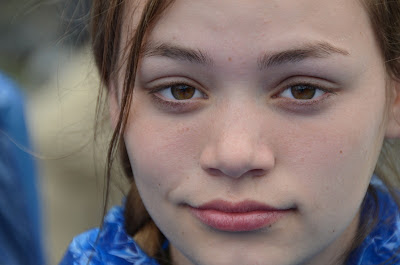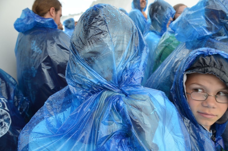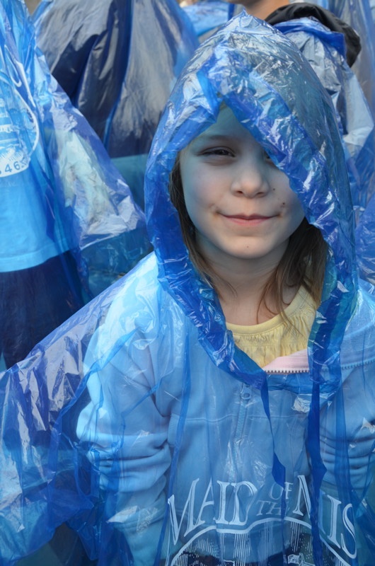 Most people tried to stay dry. Kelsi's hood blew off and she just embraced the experience.