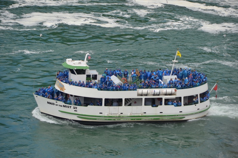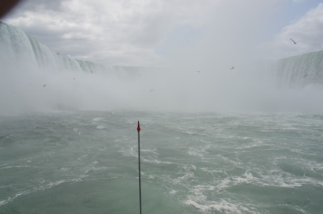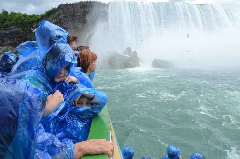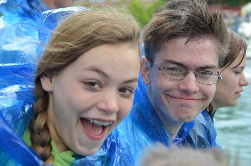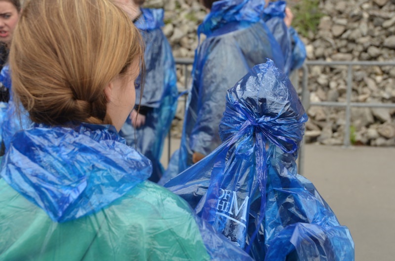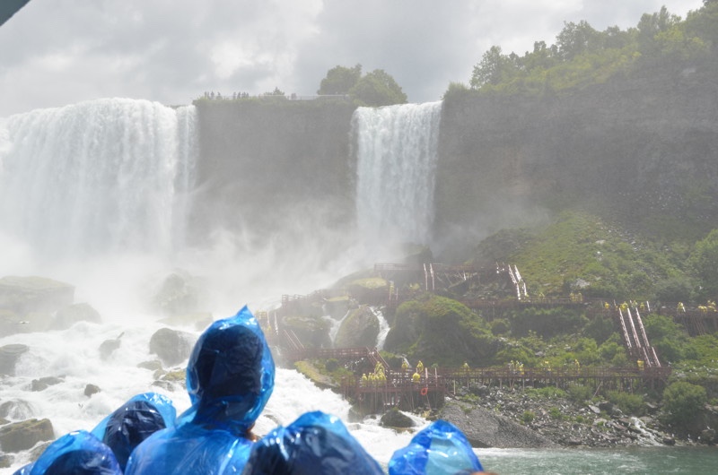 Once inside, we were surrounded on three sides by the roaring falls. The sound was deafening, the boat was rocking from the waves, and the mist turned into a downpour of rain. It seemed like we were all going to die! It was awesome.