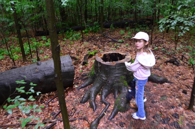 Sienna saw this tree that had been cut down and said, "That's sad." When I asked why, she said that in school she learned that some birds can only live in hollow trees and that they're rare.
