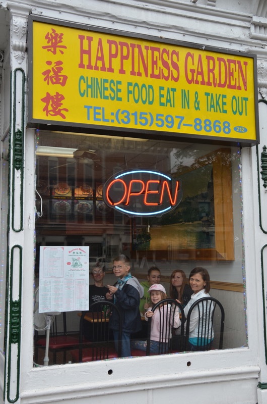 At that point, we were starving, so we ate at the "Happiness Garden," a tasty hole in the wall across from the printing press.