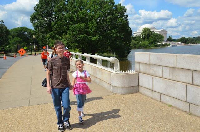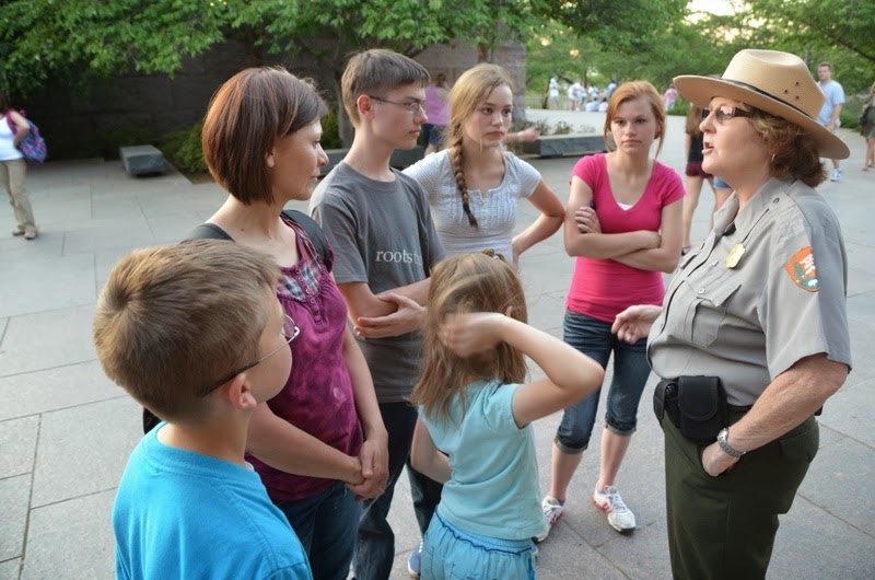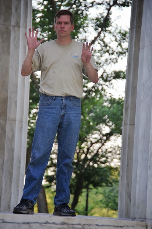 Wednesday: Bureau of Engraving, Smithsonian. Wednesday morning, June 6, 2012, we drove to Washington, D.C. and our first stop was the Bureau of Engraving, where they print paper money. I dropped Linette off to get us tickets, and then parked at the free lot at the Jefferson Memorial (narrowly escaping an unwanted bonus trip back over the bridge). Then we hiked over to meet Linette. There is a lot to see in Washington, D.C., and everything is pretty spread out, so you end up walking miles every day!