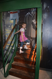 Here Sienna pretends to step on the painted-on step.