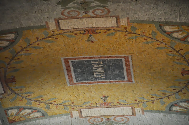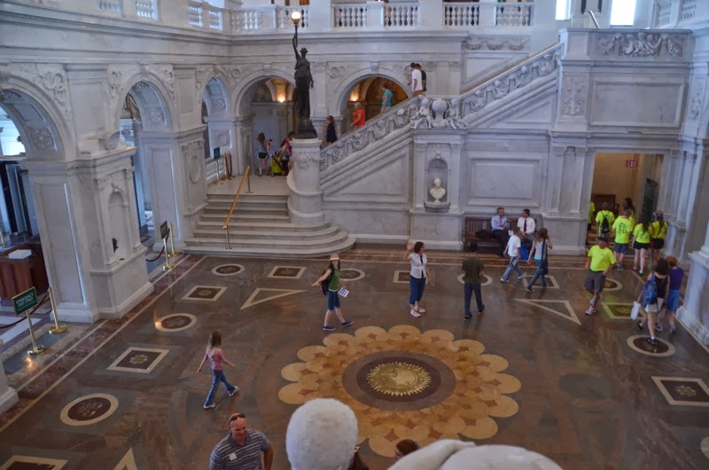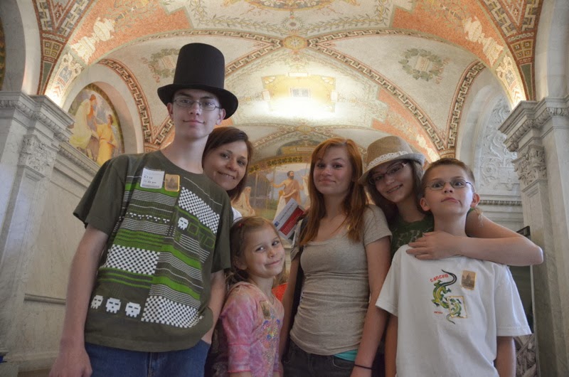 The Library of Congress is an entire building that was created as an integrated work of art. Here the family poses in front of a ceiling fresco that says "Family".