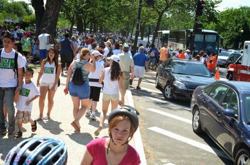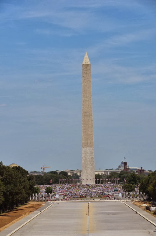 When we looked across the empty reflection pond towards the Washington Memorial, we saw a gazillion people there. And there were another gazillion where we were. It turned out to be the 100th anniversary of Girl Scouts, and there were 250,000 girl scouts on the mall!!