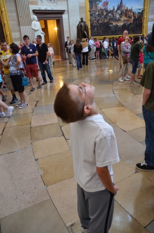 In the rotunda, you can't help but look up at the painting way up there.