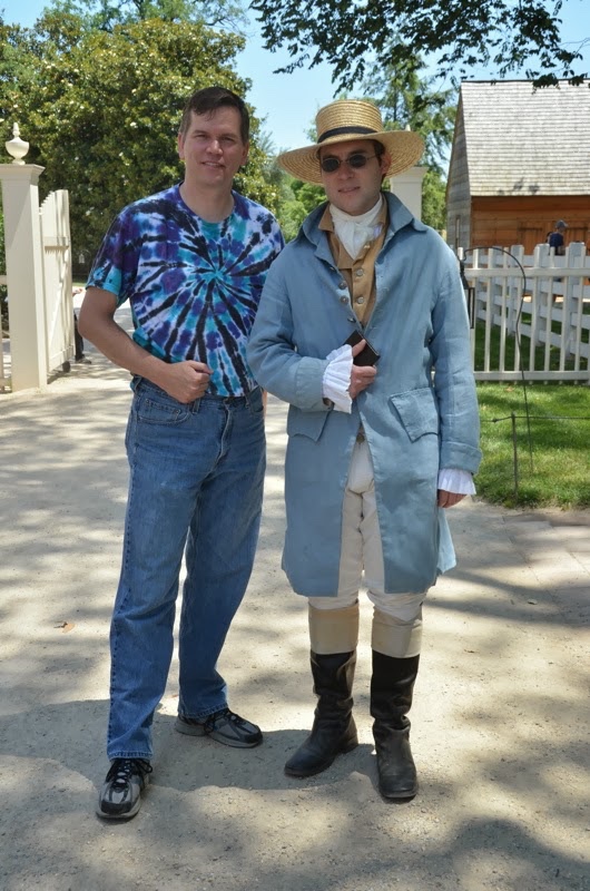 Friday, June 8, 2012, we went to Mt. Vernon, which is where George Washington lived. Here is Jared wearing a 1960's shirt, 1860's hat, and hanging with a 1760's guy.