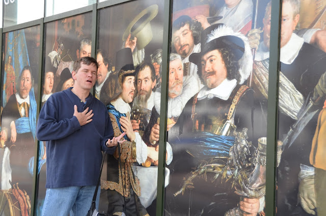 At one stop, there were some very dramatic-looking Rembrandt scenes on a wall, so I joined in for a moment.