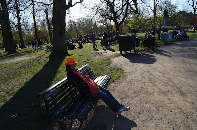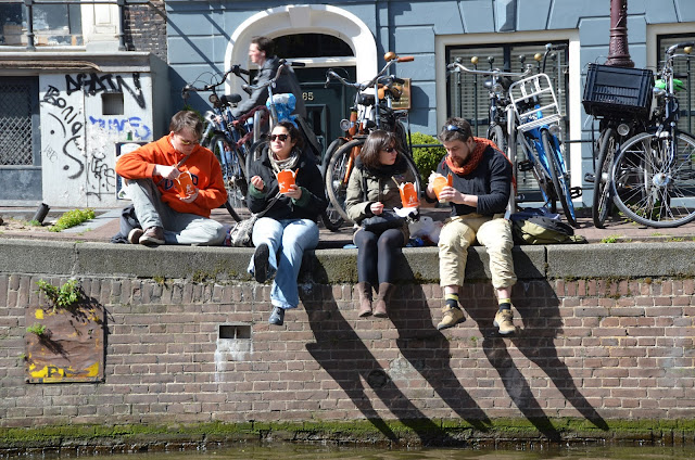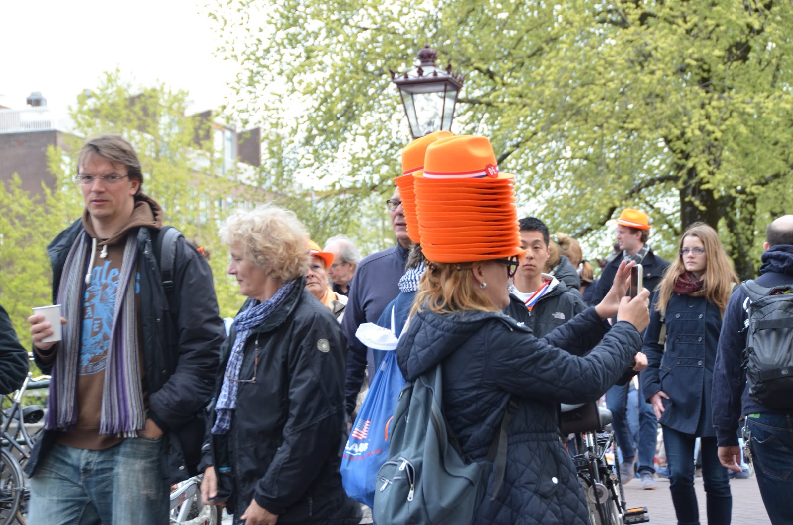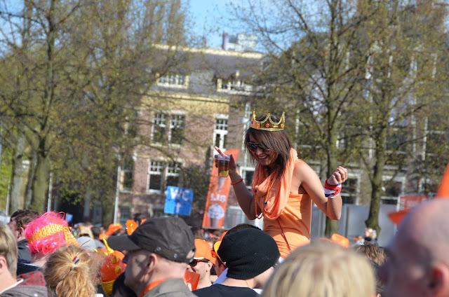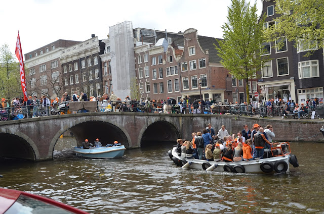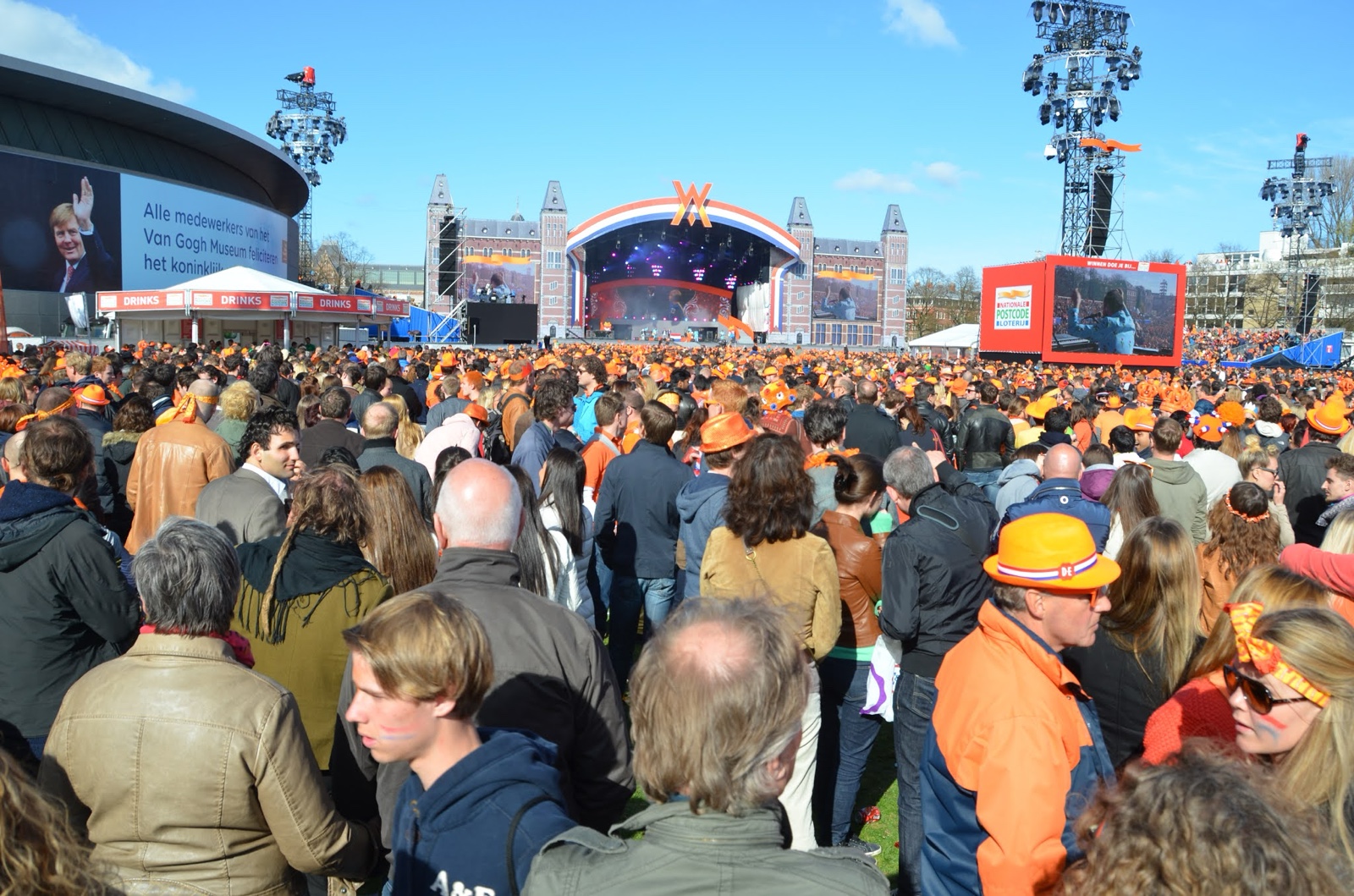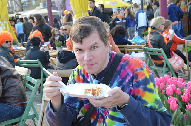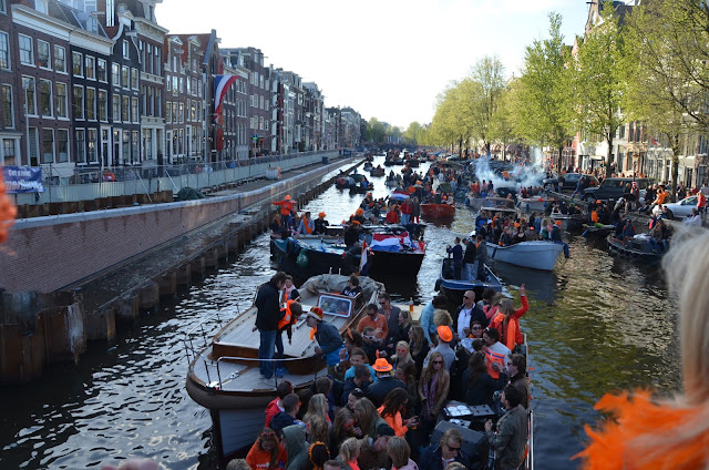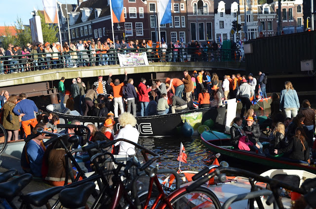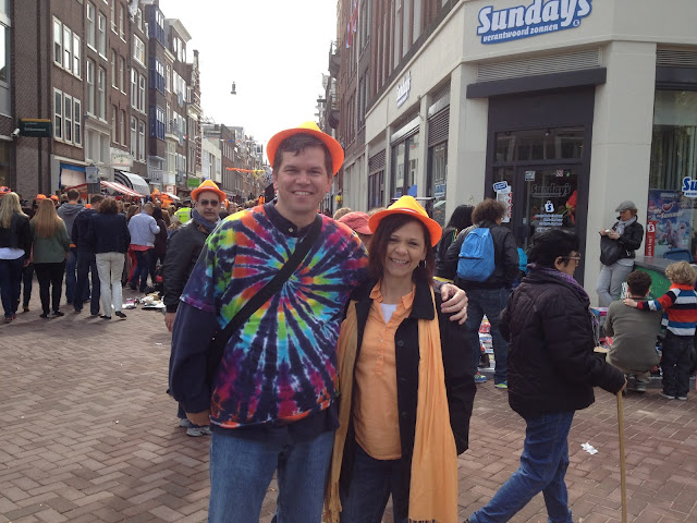 When we were booking a hotel in Amsterdam, it was strange how few rooms there were available. We finally booked one, and our hotel e-mailed me to tell me that April 30 (the second day we were there) was "Queen's Day" (Koninginnedag), which is the queen's birthday. For that day, they shut down the bus system, and 800,000 people typically come to town for a huge party. This year, though, it was even bigger, because the queen was abdicating the throne and turning it over to her son Willem-Alexander on that day, so the crowd was expected to be more like one million people.