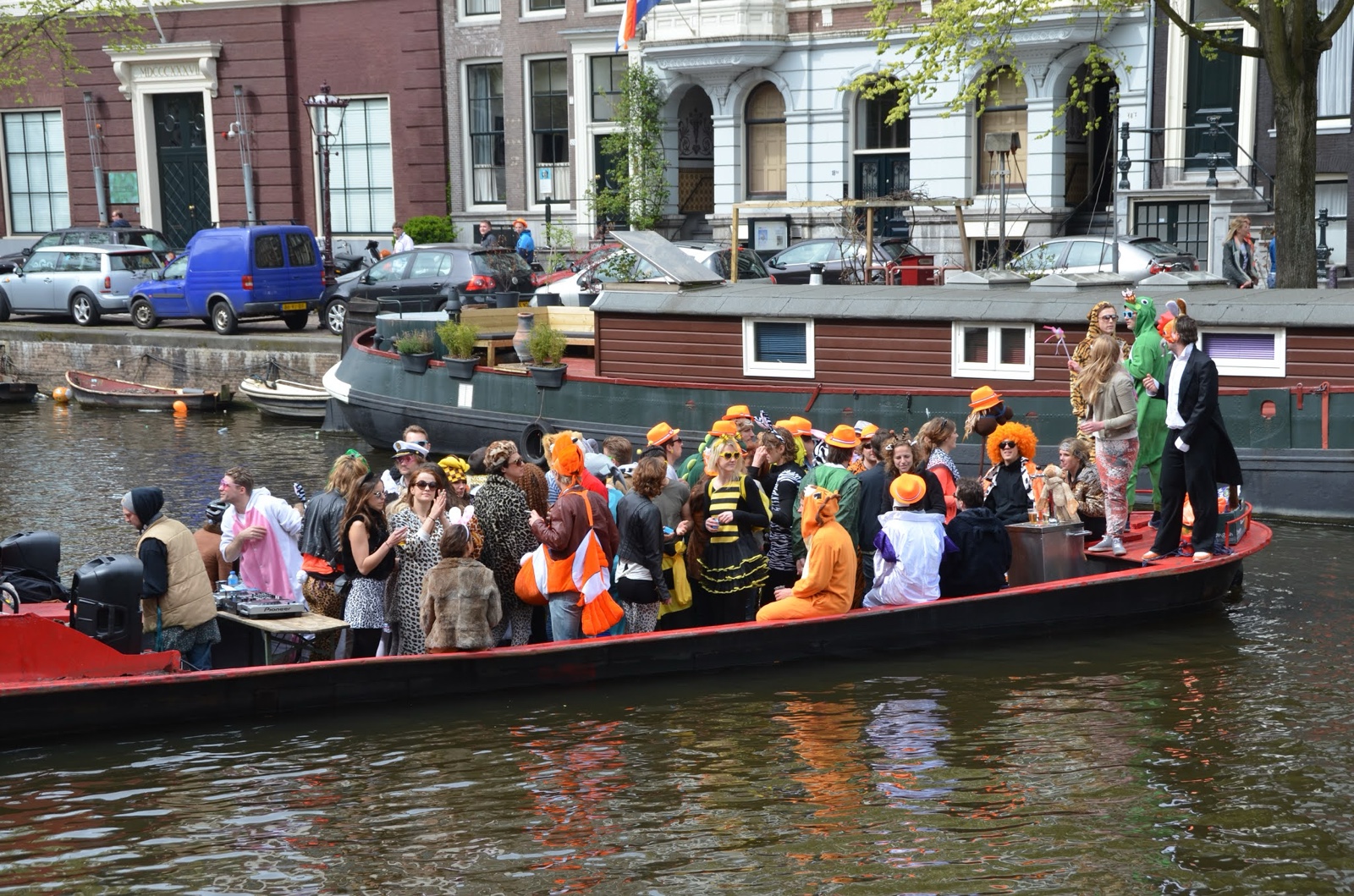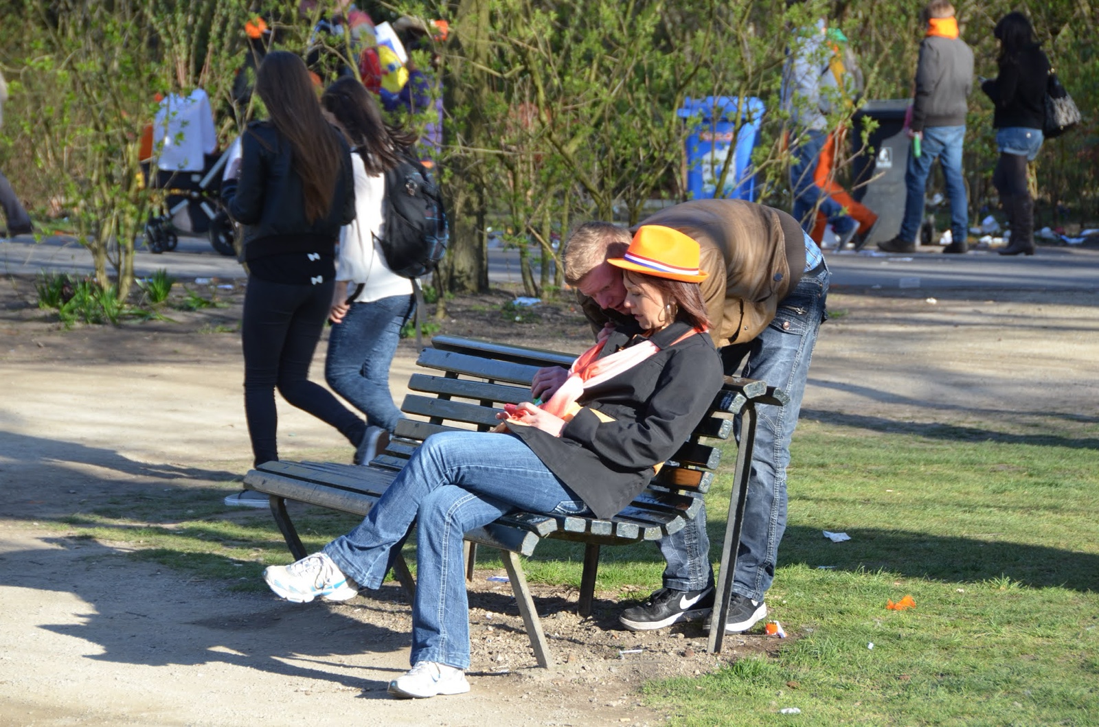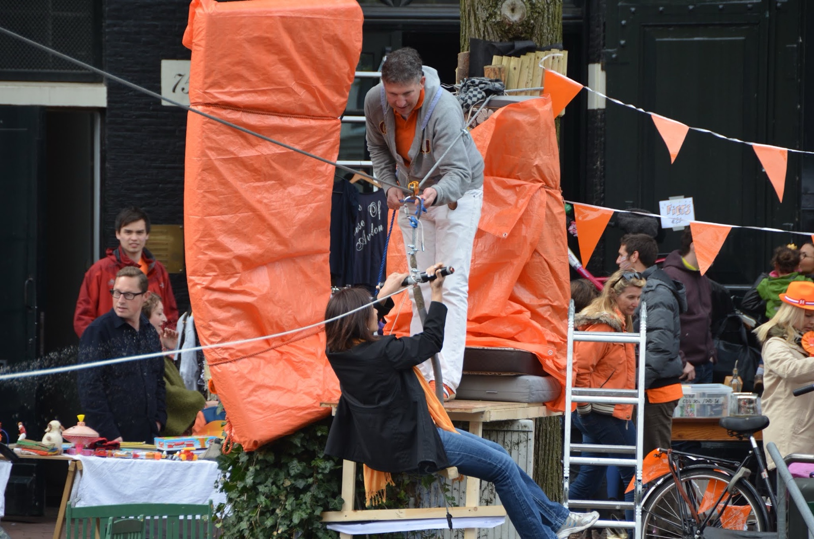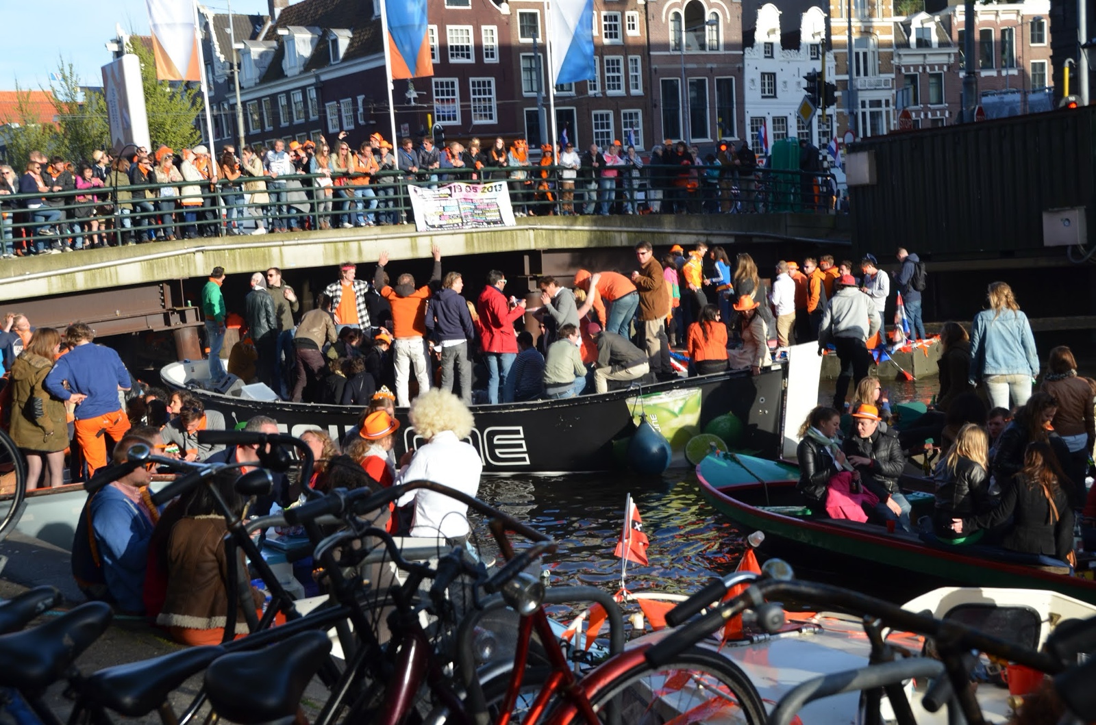 When we were booking a hotel in Amsterdam, it was strange how few rooms there were available. We finally booked one, and our hotel e-mailed me to tell me that April 30 (the second day we were there) was "Queen's Day" (Koninginnedag), which is the queen's birthday. For that day, they shut down the bus system, and 800,000 people typically come to town for a huge party. This year, though, it was even bigger, because the queen was abdicating the throne and turning it over to her son Willem-Alexander on that day, so the crowd was expected to be more like one million people.
