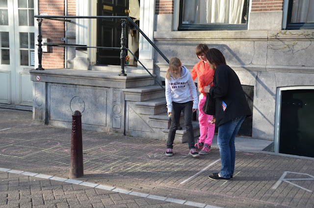 Everyone we met in Amsterdam spoke English just fine. So when Linette saw these girls playing hop scotch and tried to speak with them, she was surprised to find that they didn't understand much English. Apparently they largely pick it up at school, but then it is reinforced by things like most of their TV shows being in English.
