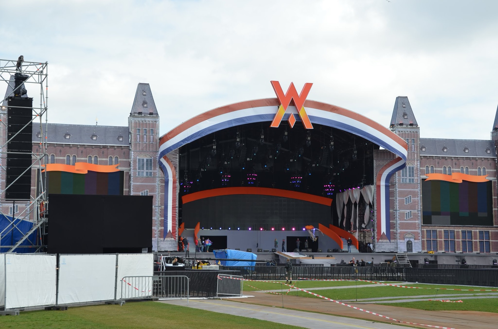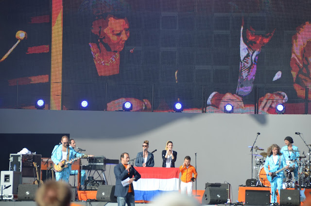 Right near the Rijksmuseum was the stage where we had heard people rehearsing the day before. Now it was open to the public and was filled with a massive crowd. I took the picture below from about the middle of the crowd, so there are many people behind us as in front of us. It seemed to be the epicenter of the party.