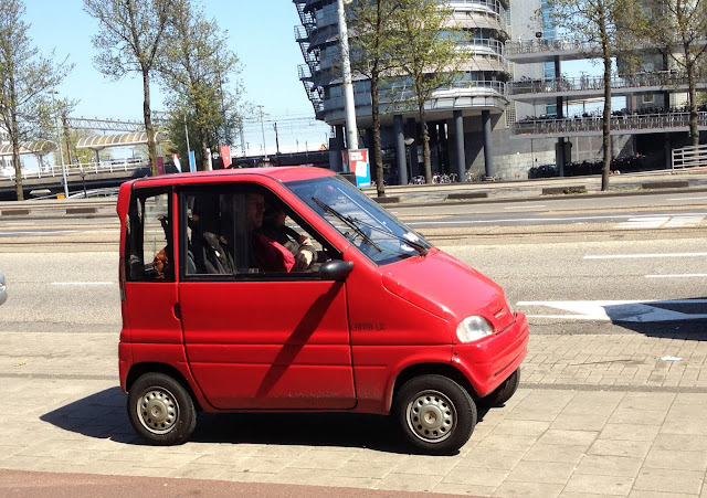 Ok, so I thought the "Smart" cars in Germany were tiny. But Amsterdam had them beat with this dinky vehicle. Believe it or not, two people fit in it side-by-side. It's the only car narrow enough to share some roads with bicycles.