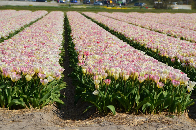 Across the water were huge farms full of tulips, which stretched on for miles.