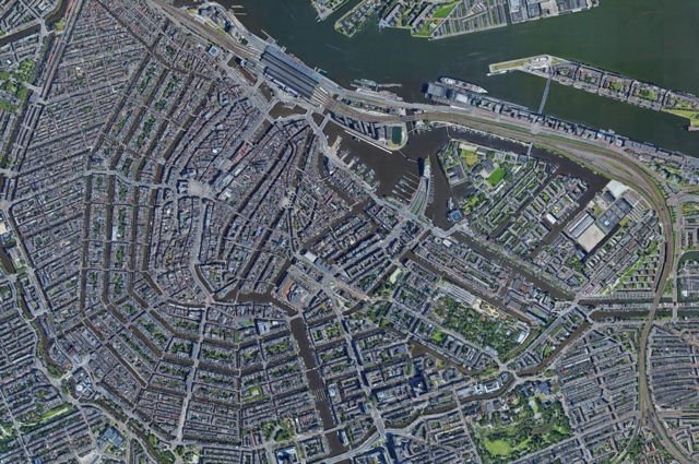 Below is a satellite picture of the concentric canals of Amsterdam, which were planned and constructed in the 1600s.