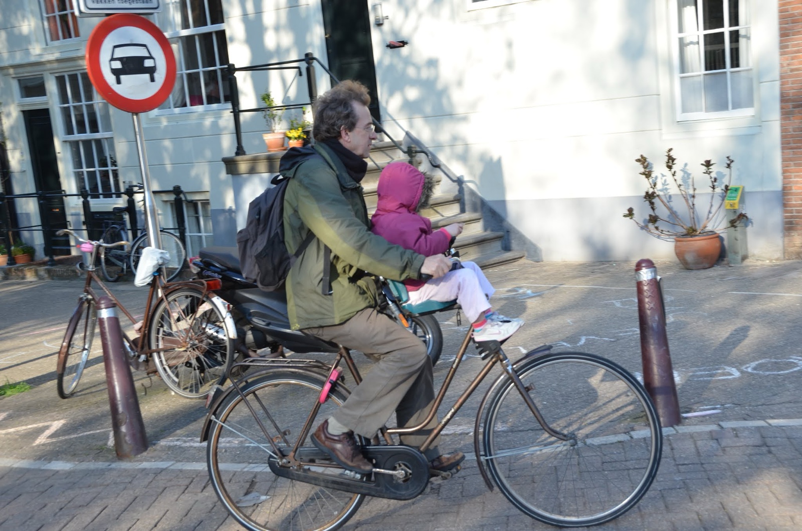 This mom had a 3-seat "family bike" with a basket on the front, so you can take both kids to the store.