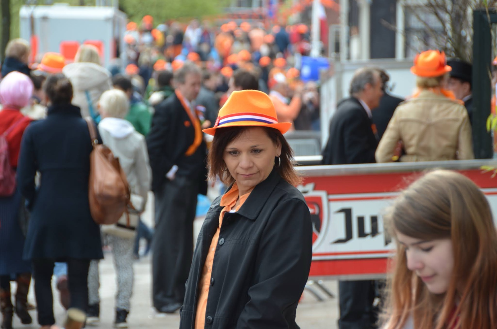 We hadn't gone 20 feet from our hotel before someone handed me and Linette each an orange hat (which symbolizes the royal "House of Orange").