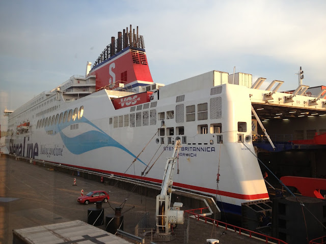 On May 1, 2013, after leaving Keukenhoff Gardens, we took a bus to the "Hook of Holland" (Hoek van Holland, or "Corner of Holland", because it sticks out). There we caught a Stena Line ferry to England.
