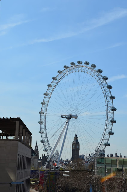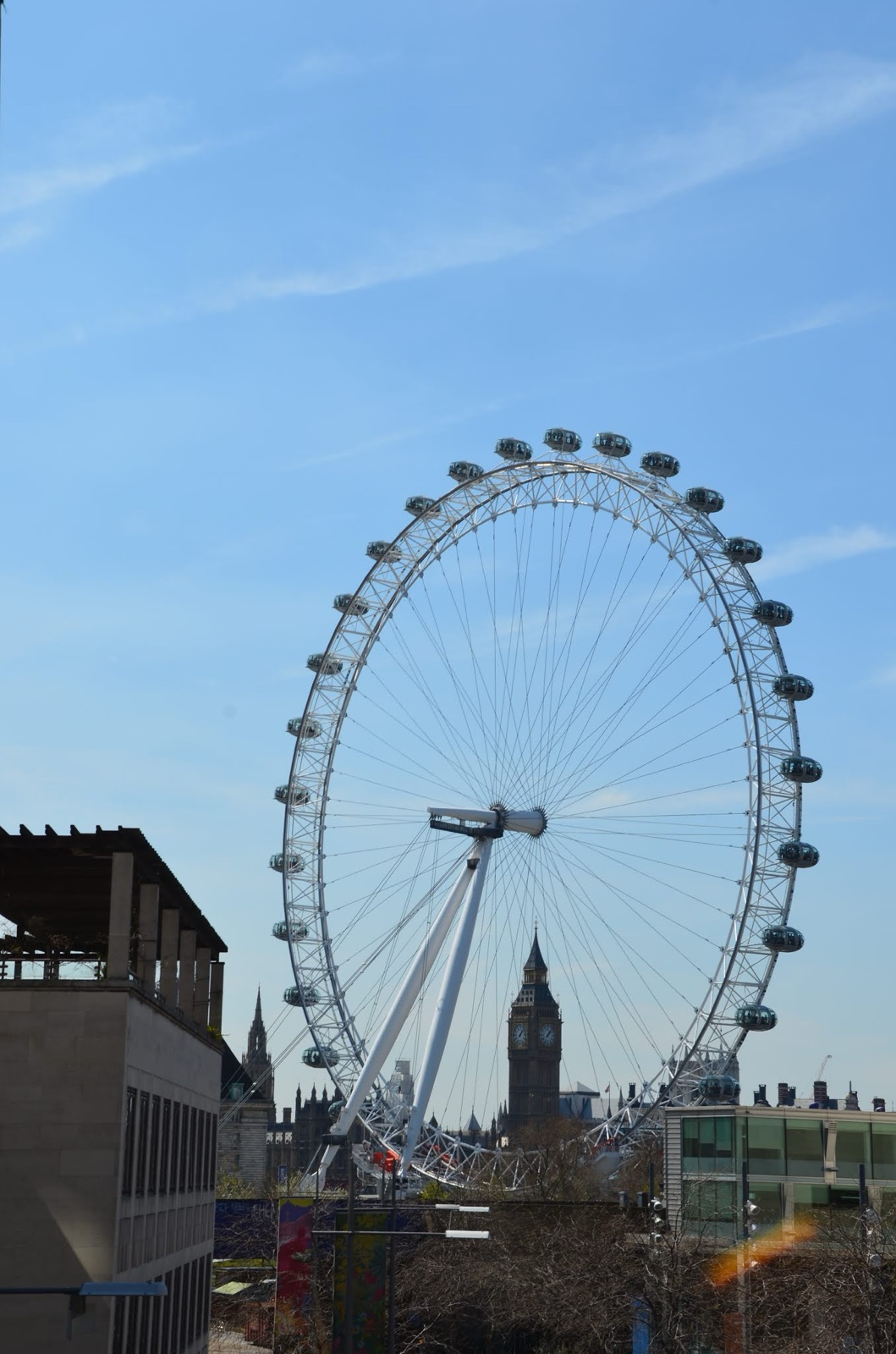 Here is the famous "London Eye" Ferris wheel, with "Big Ben" showing through the middle.
