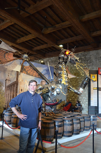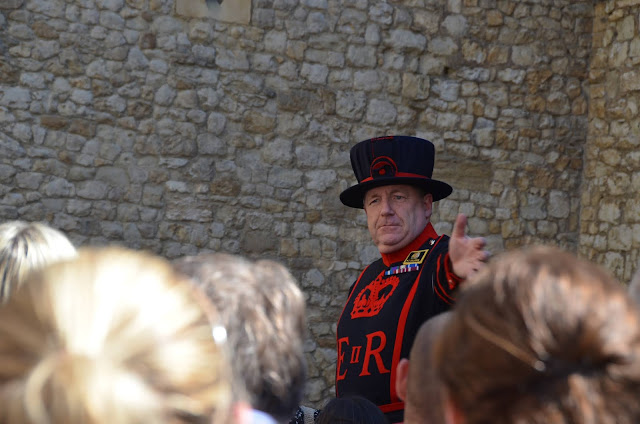 We were led on a tour of the tower by one of the Yeomen Warders (ceremonial guardians) of the Tower of London, popularly known as "beefeaters." Our guy made sure we understood that he was not a "servant", but a "soldier" who also happened to give tours. Also, he pointed out that he was not wearing a "costume", pretending to be someone; this was his actual uniform.