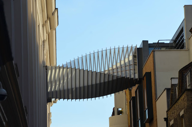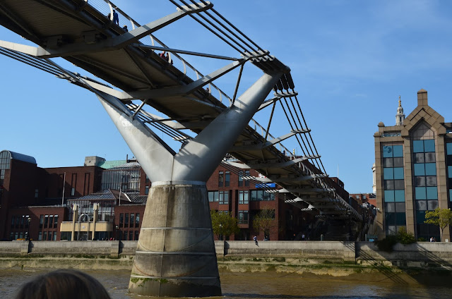 We also saw the Millennium Bridge (built in 2000). It is also called the "Wibbly Wobbly Bridge", because when it was first built, it swayed under normal pedestrian foot traffic, requiring it to be stabilized with a bunch of springy boxes that absorb the vibrations.