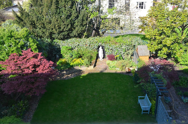 The view of the back yard from our window included a marble-looking statue, which was cute.