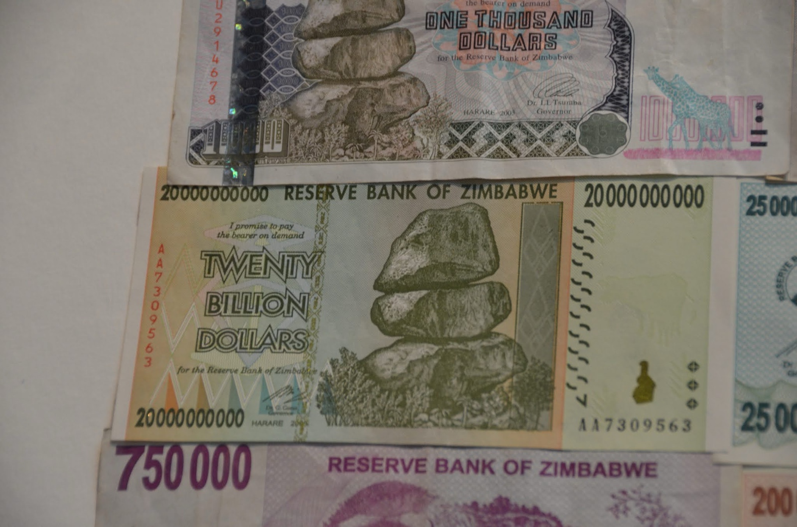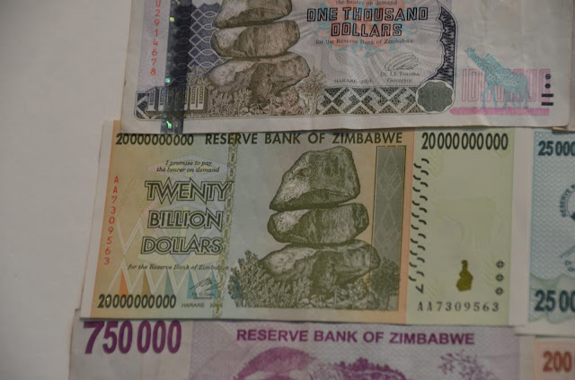 One display showed a twenty billion dollar bill from the Bank of Zimbabwe, the result of hyperinflation after the government was taken over by some well-intentioned people who tried to print money to solve the country's new financial problems.