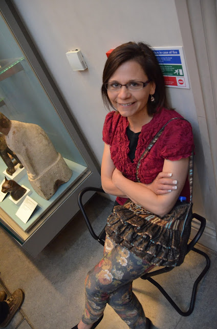 We love museums, but I find that my feet eventually start hurting so bad that it's hard to enjoy myself. So I was almost giddy when I saw that the British Museum had a rack of small folding chairs that you are welcome to use for free. They act like a cane when you're walking around, and then when you find something interesting, you can pop it open, take a seat, and rest your feet for a few minutes. Brilliant!