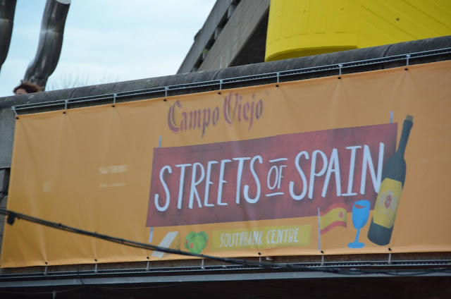 We walked across a bridge over the Thames (pronounced "tems") River, and found a festival going on called "Streets of Spain", with lots of shops and street food options.